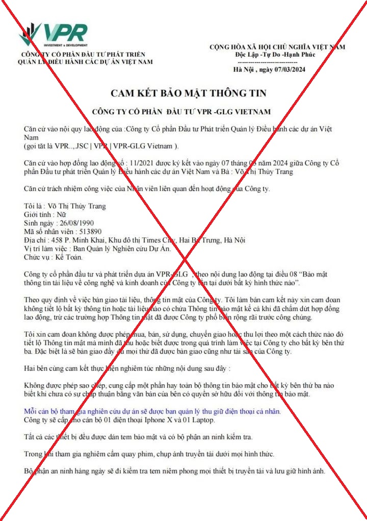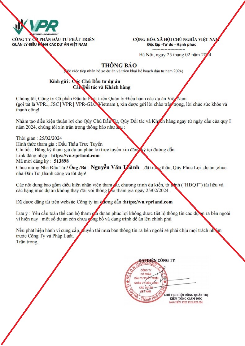 [TIẾP THEO] CẢNH BÁO MẠO DANH VPR VÀ CÁC CÔNG TY THÀNH VIÊN CỦA VPR