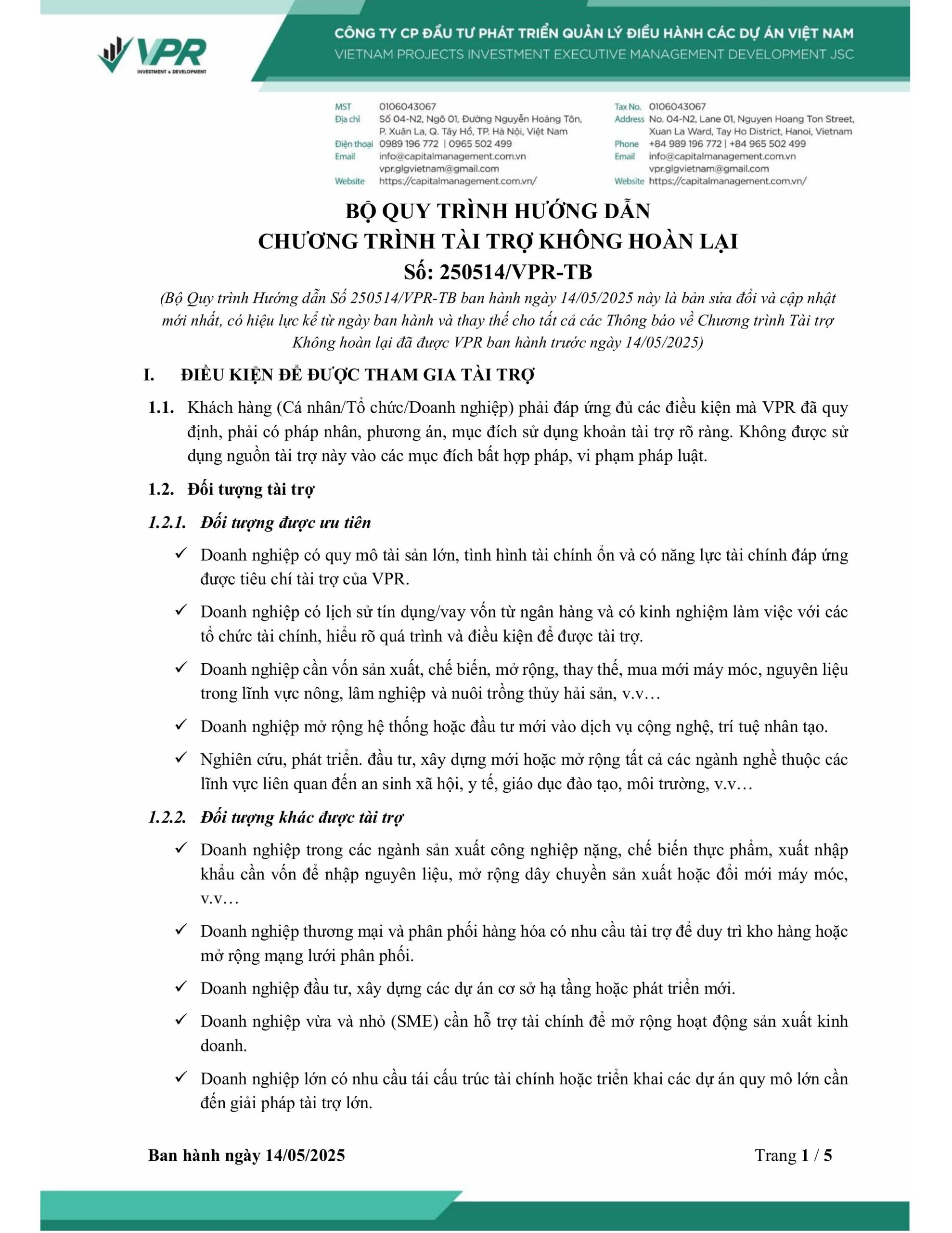 VPR – HOẠT ĐỘNG HỢP TÁC KINH DOANH