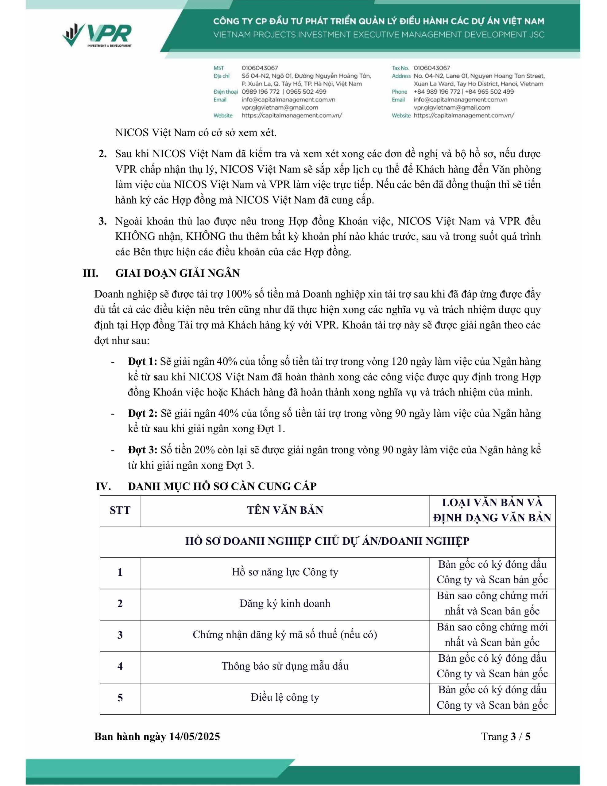 NICOS VIỆT NAM – HỖ TRỢ HOÀN THIỆN HỒ SƠ DỰ ÁN