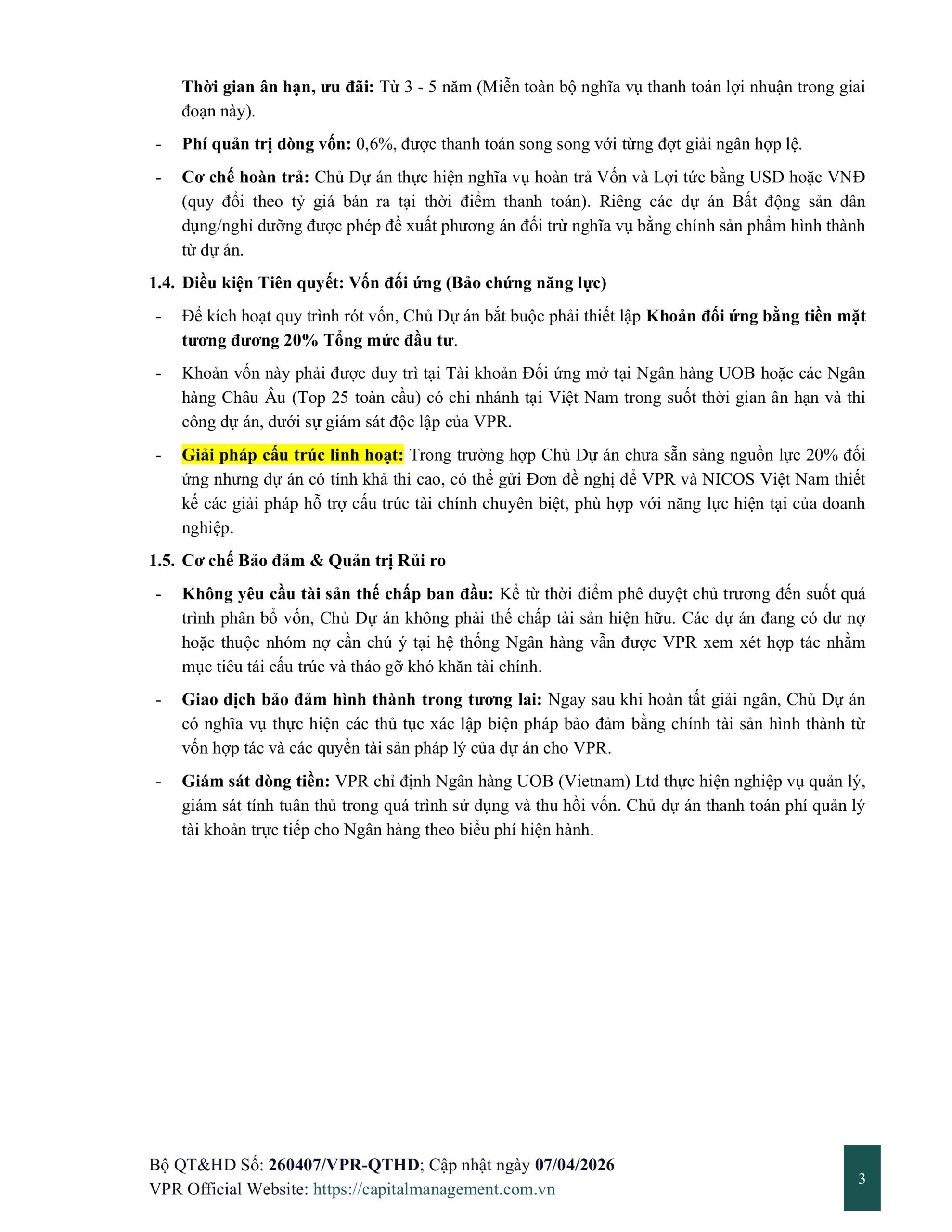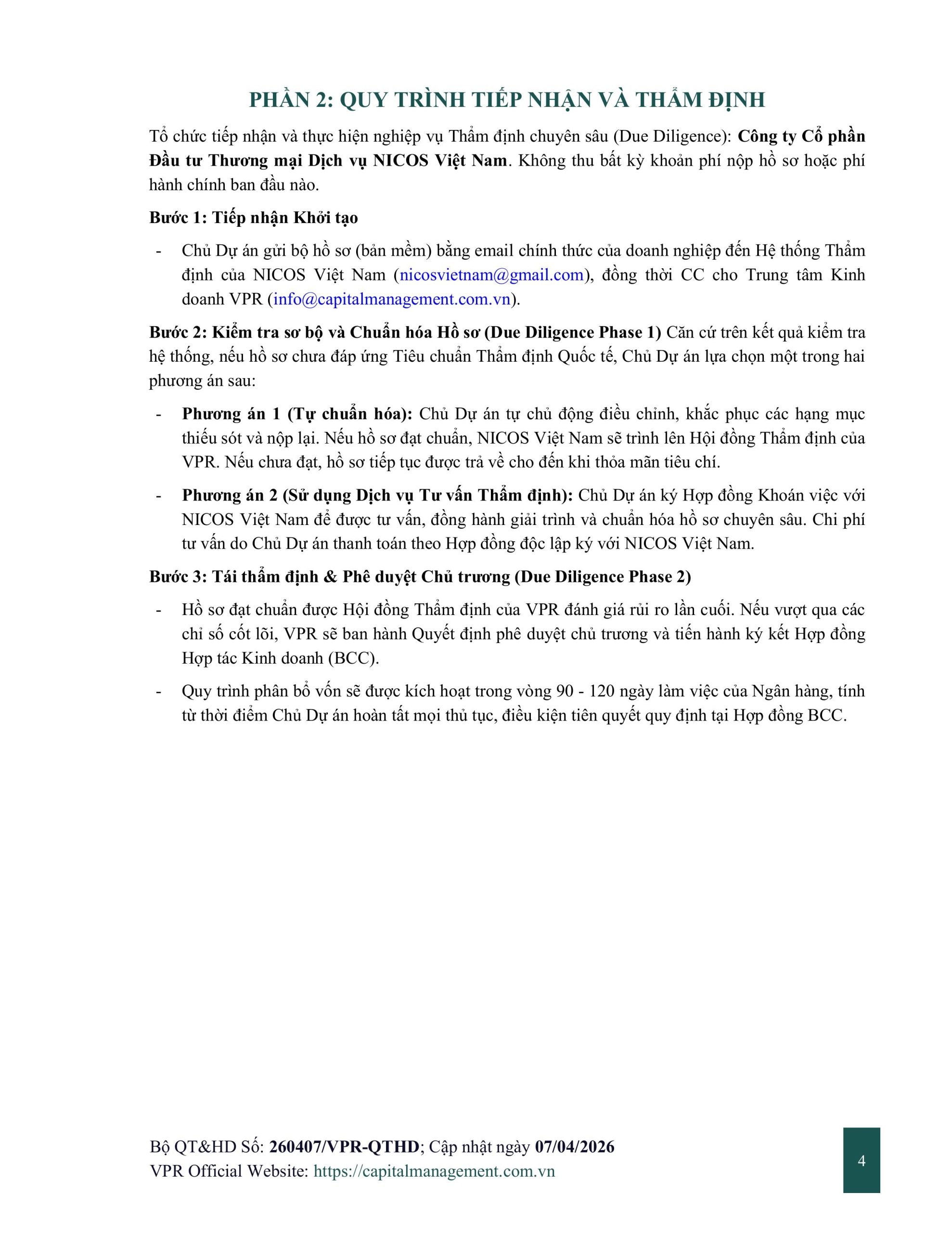VPR – CHƯƠNG TRÌNH TÀI TRỢ KHÔNG HOÀN LẠI